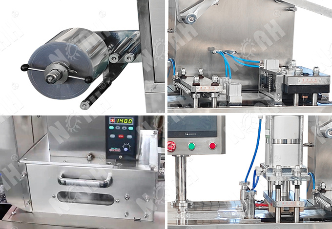 5.汽缸热封,停机热封模自动分离、不会烫伤包装物,延长机械使用寿命。
